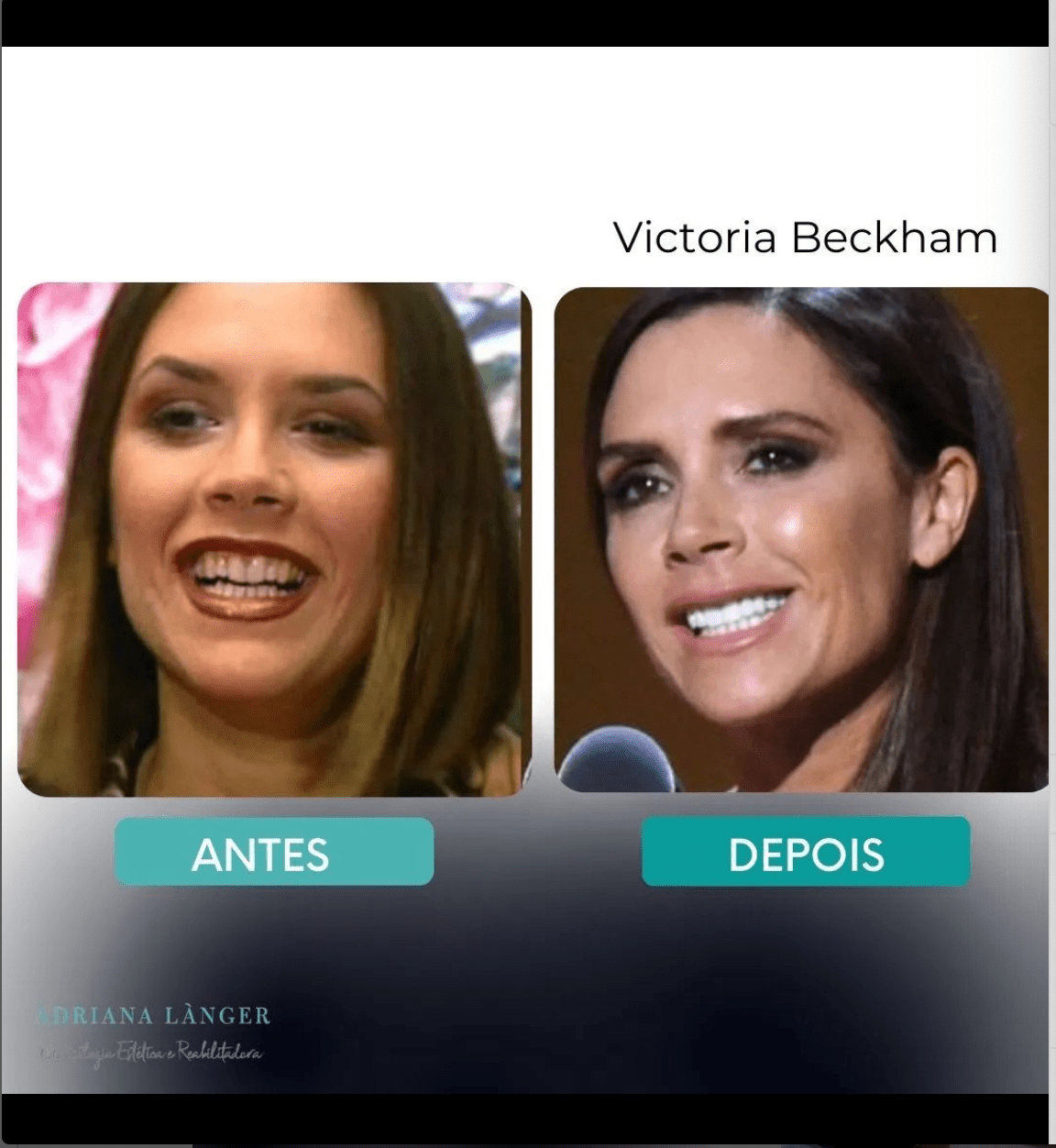 Este foi o caso da Victoria Beckham, que antes NÃO tinha o hábito de sorrir, porque não gostava de seus dentes.